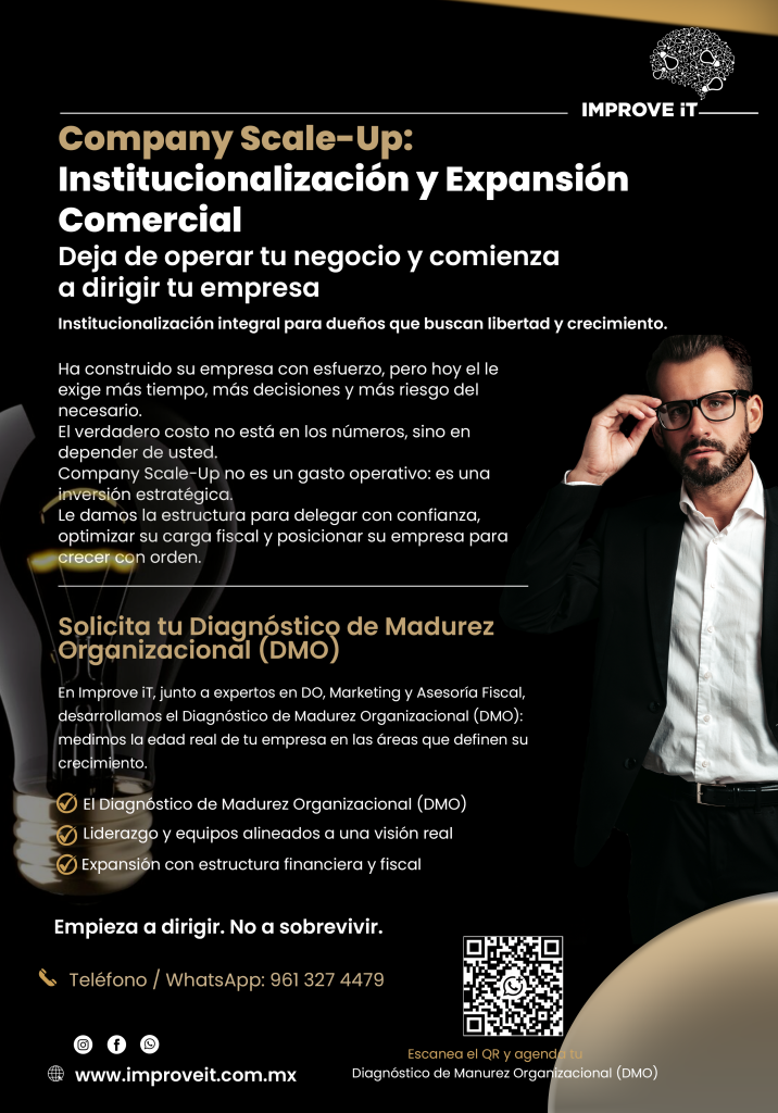 En Improve iT hemos desarrollado una metodología que nos ha permitido dar suporte a dichas organizaciones que ven en la institucionalización una oportunidad de sobrevivir, de ordenarse y desde luego, crecer. Pasando por un proceso de análisis detallado, se genera una Planeación Estratégica justo a la medida de cada empresa, la cual nos lleva de la mano y nos da certeza en el camino.
